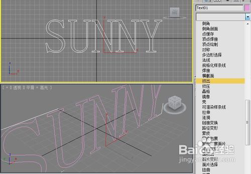 3.接著打開右邊的修改器面板,在下拉列表中選擇“擠出”命令,如圖3所示: