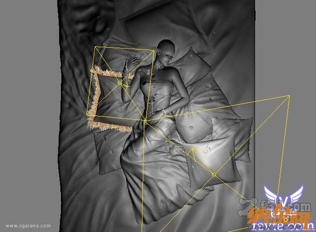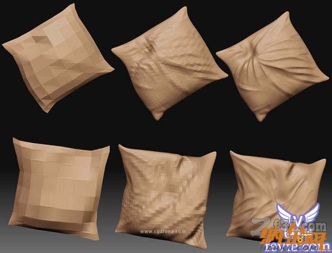 由于我需要靠墊上面有UV,所以在3ds Max中制作了基本網(wǎng)格。 之后將基本網(wǎng)格移動(dòng)到ZBrush開始塑形。我使用了膨脹刷的LAZY MOUSE選項(xiàng)開始展開,我試著將枕頭變形,讓它看起來像是被壓住了的樣子。