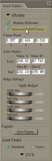 頭部、肩膀、大腿這三個部位的設置;打開Window下Joint Editor(骨架影響區(qū)域編輯),選擇X Rotate,