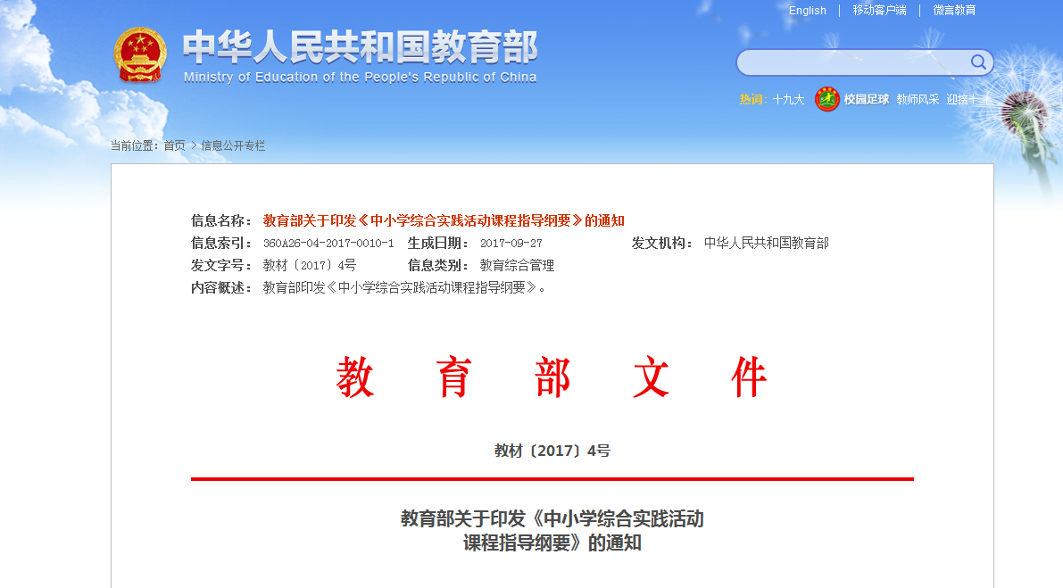 教育部關(guān)于印發(fā)《中小學(xué)綜合實(shí)踐活動課程指導(dǎo)綱要》的通知