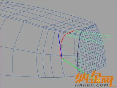 24、對齊。選擇最后二個CV's,并向前移動他們,讓他們達(dá)成表面然后對齊。