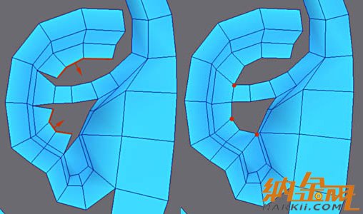 選擇連歌頂點(diǎn)并且焊接(weld)它們以便刪除三變形(triangle)