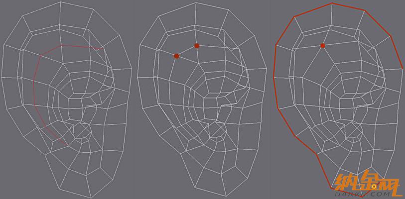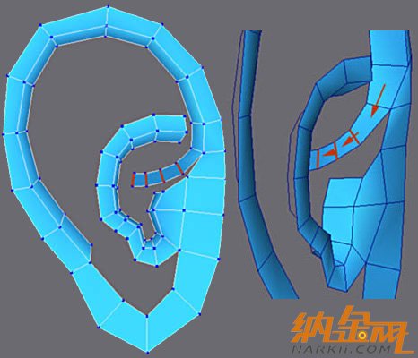 這些內(nèi)部的多邊形用于最后擠壓建立耳孔的