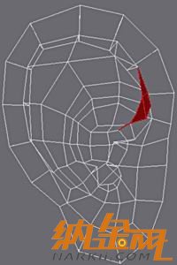 15選擇耳孔處的多邊形并且應(yīng)用擠壓(Extrude)和斜角(Bevel)來(lái)建立一個(gè)洞,也就是耳孔,右邊圖細(xì)分2和使用cage LPM