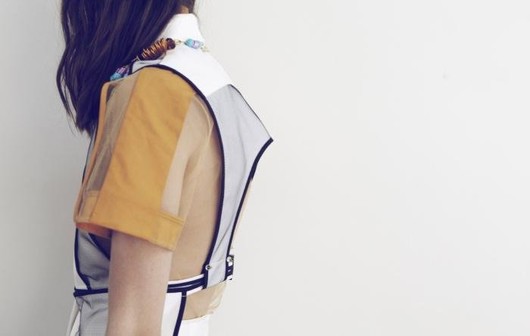 這位曾被《ELLE》雜志英國(guó)版網(wǎng)站提名為「2011 年時(shí)尚新星」(Rising Star of 2011)的年輕設(shè)計(jì)師擅長(zhǎng)玩弄筆挺立體的剪接線及虛與實(shí)的布料,而相對(duì)于服裝利落的簡(jiǎn)潔線條,Kirsty Ward 的飾品可真是繁復(fù)地像非洲女性所佩帶的巨大首飾,這些圈上多彩金屬線和珠子的項(xiàng)鍊可都是 Kirsty Ward 一手纏繞出來(lái)的,她甚至還讓這些小飾品們爬上衣服,增添飾品與服裝的連結(jié)。