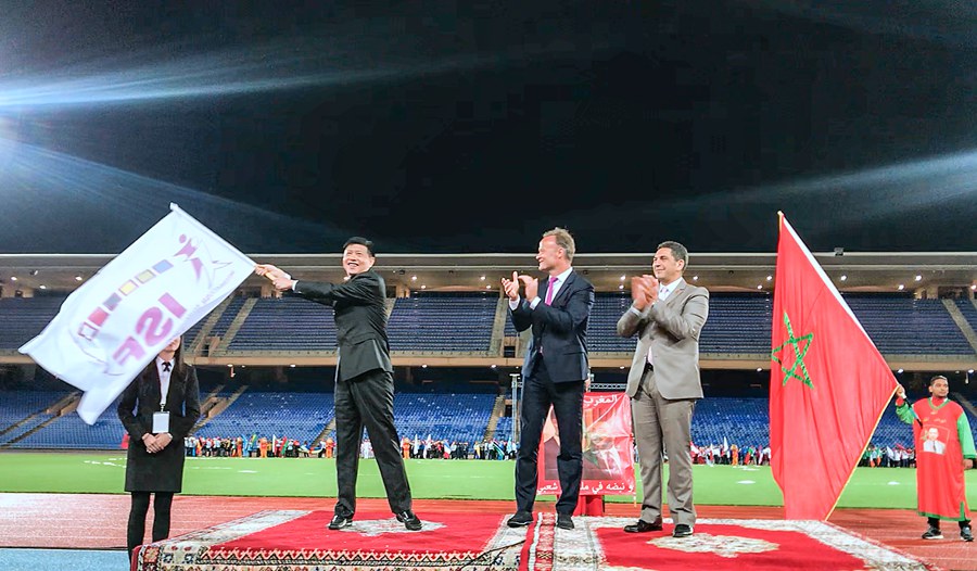 晉江新聞網(wǎng)摩洛哥馬拉喀什5月9日專電 從地中海到東海,從太平洋到大西洋,晉江接過世界中學(xué)生運(yùn)動(dòng)會(huì)的旗幟,這一刻,一場青年盛會(huì)將從非洲延續(xù)到亞洲,從摩洛哥傳遞到中國。